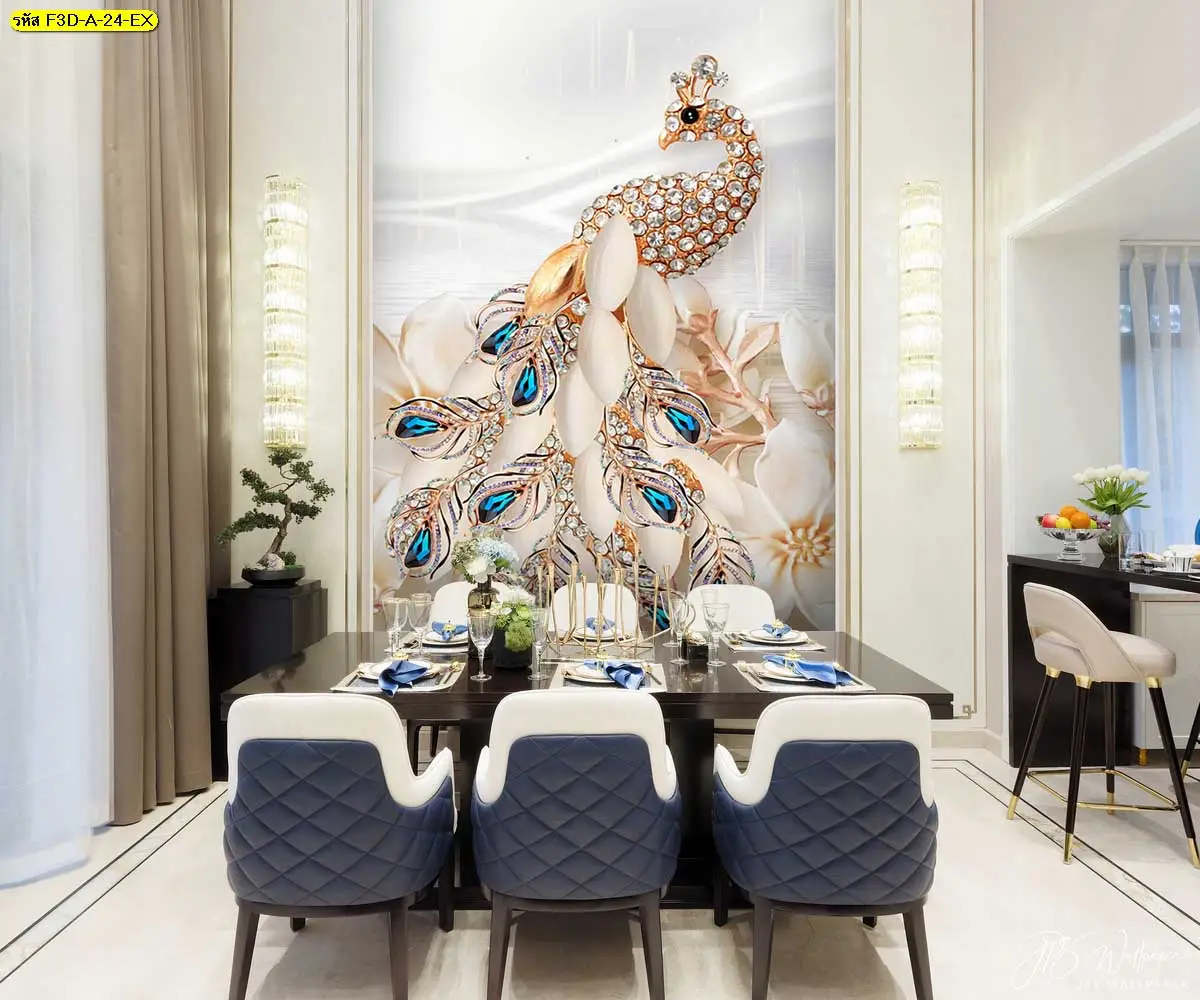 เสริมฮวงจุ้ยนำโชค ตกแต่งผนังห้องด้วย วอลเปเปอร์ลายนกยูง ภาพวาดลายนกยูง ทุกพื้นที่ในบ้าน