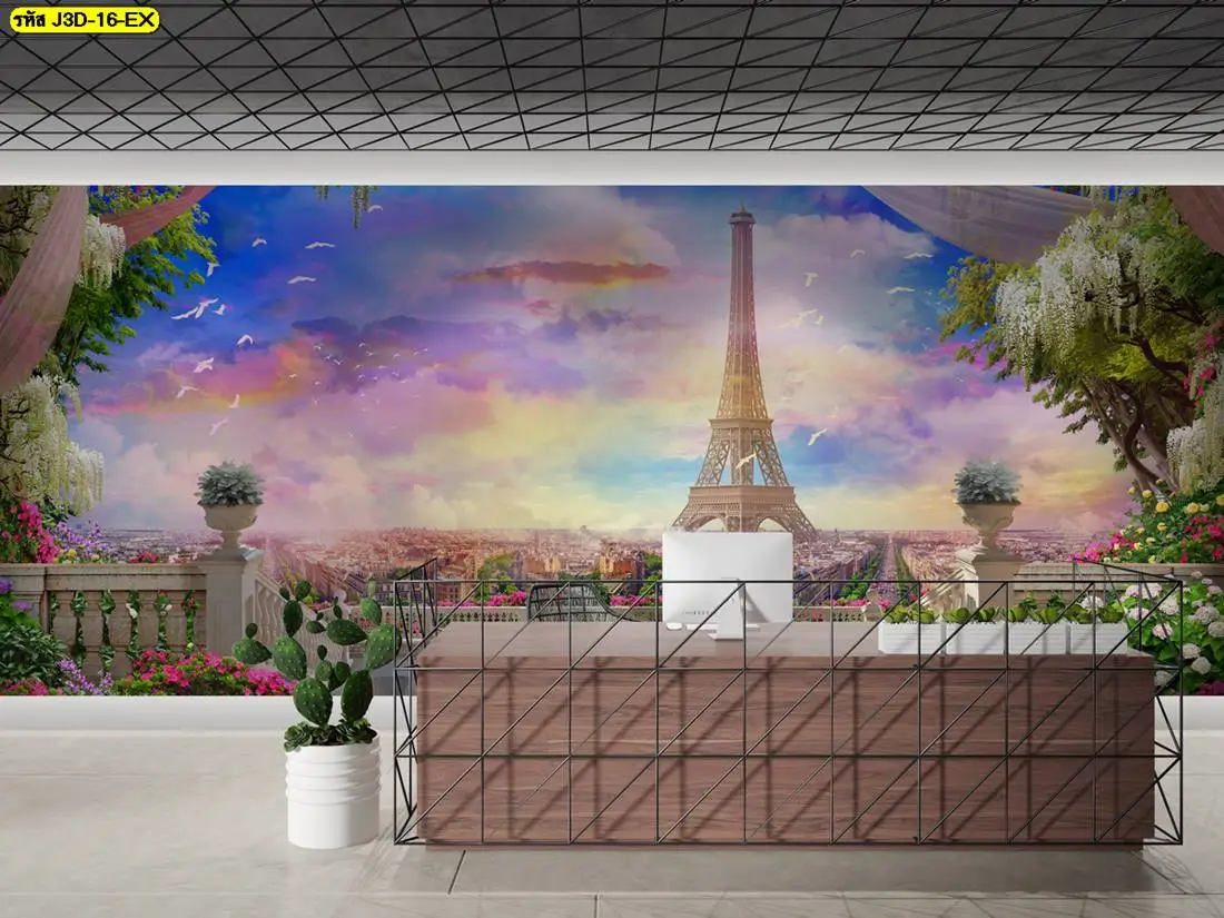 - ลายสถาปัตยกรรมและเมือง ภาพมุมมองเมืองสำคัญหรือแลนด์มาร์กเช่น หอไอเฟล ช่วยเพิ่มความหรูหราและทันสมัยให้กับห้อง