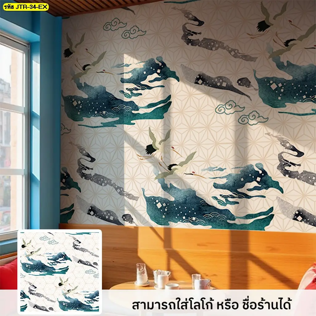 รับพิมพ์วอลเปเปอร์ วอลเปเปอร์ตกแต่งร้านอาหารญี่ปุ่น วอลเปเปอร์ลายนกกระเรียน วอลเปเปอร์ลายปลาคราฟ จัดส่งทั่วไทยและต่างประเทศ