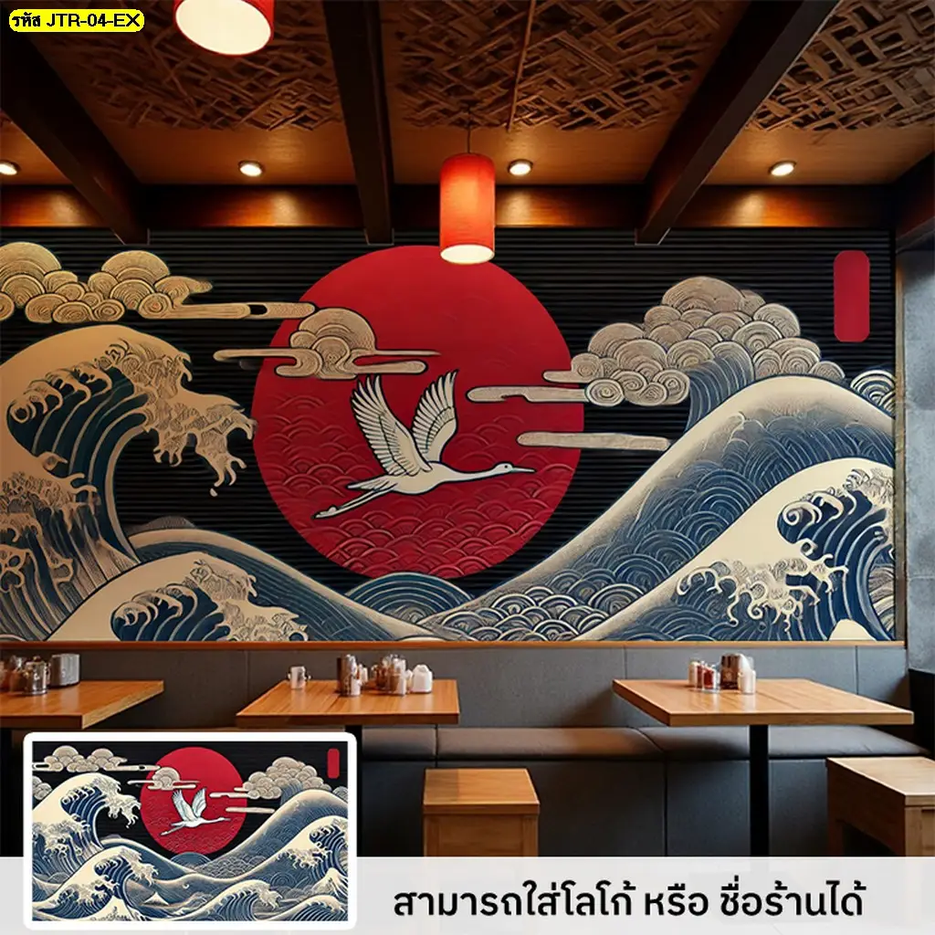 สามารถสั่งผลิตวอลเปเปอร์ลายคลื่นทะเลญี่ปุ่นสำหรับตกแต่งร้านซูชิได้ตามขนาดที่ต้องการ - DDS มีวอลเปเปอร์ตกแต่งร้านอาหารเอเชียแบบใดบ้าง?