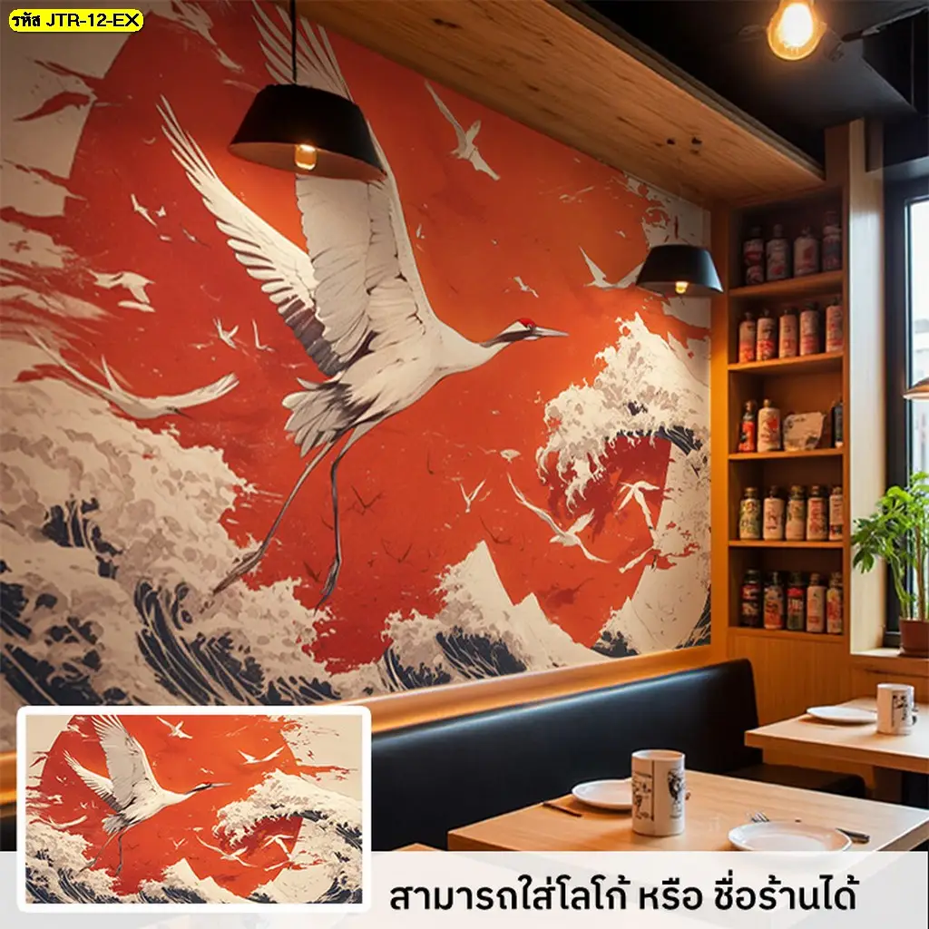 เหมาะกับร้านอาหารญี่ปุ่น ซูชิ หรือร้านอาหารเอเชียที่ต้องการความสดใส - วอลเปเปอร์ลายนกกระเรียนกับพระจันทร์สามารถสั่งผลิตได้หรือไม่?